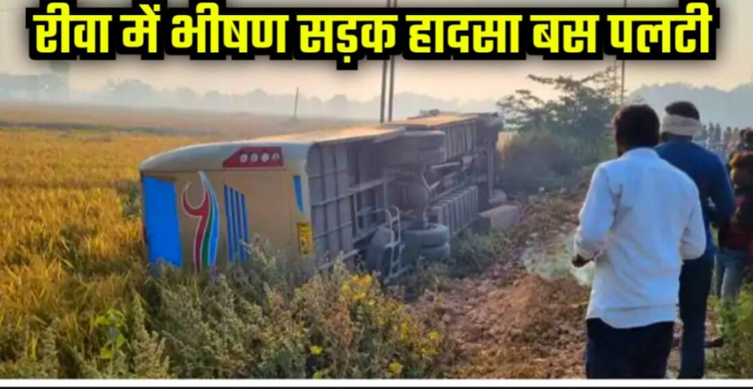 Rewa accident: रीवा के गुढ़ बायपास पर ड्राइवर को झपकी आ गई और नफीस ट्रैवल्स की बस सड़क से उतर गई। घटना...