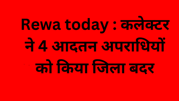 ByRewa Today10 April 2024Rewa Today Desk : कलेक्टर एवं जिला दण्डाधिकारी श्रीमती प्रतिभा पाल ने 4 आदतन अपराधियों कोजिला बदर के आदेश दिए हैं। लोकसभा चुनाव...
