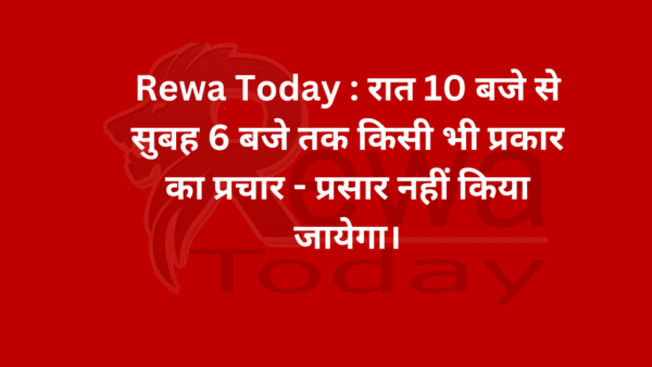 ByRewa Today5 April 2024Rewa Today Desk : निर्वाचन आयोग के निर्देशानुसार आदर्श आचार संहिता के प्रभावी समयमें रात 10 बजे से सुबह 6 बजे तक डोर...