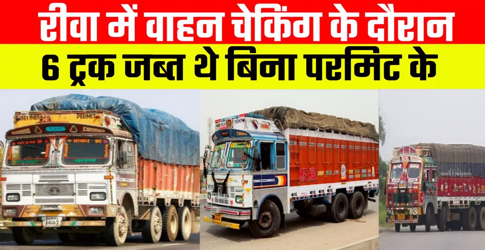 Rewa News During vehicle checking in Rewa district, 6 trucks without permit were seized, 2 lakh motor tax is due