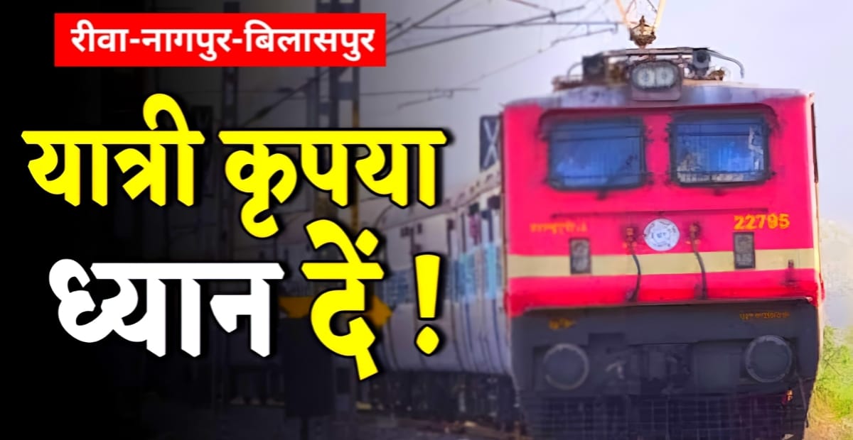 जिनमें रीवा से बिलासपुर तक चलने वाली ट्रेन 18247 15 से 19 नवंबर तक और बिलासपुर से रीवा के बीच चलने वाली ट्रेन 18248 16 से 20 नवंबर तक शामिल हैं। रीवा से चिरमिरी के बीच चलने वाली ट्रेन 11751 को 18 नवंबर और चिरमिरी से रीवा के बीच चलने वाली ट्रेन 11752 को 19 नवंबर के लिए रद्द कर दिया गया है। करेली स्टेशन पर किए जा रहे कार्य को देखते हुए उक्त ट्रेन को रद्द कर दिया गया है।