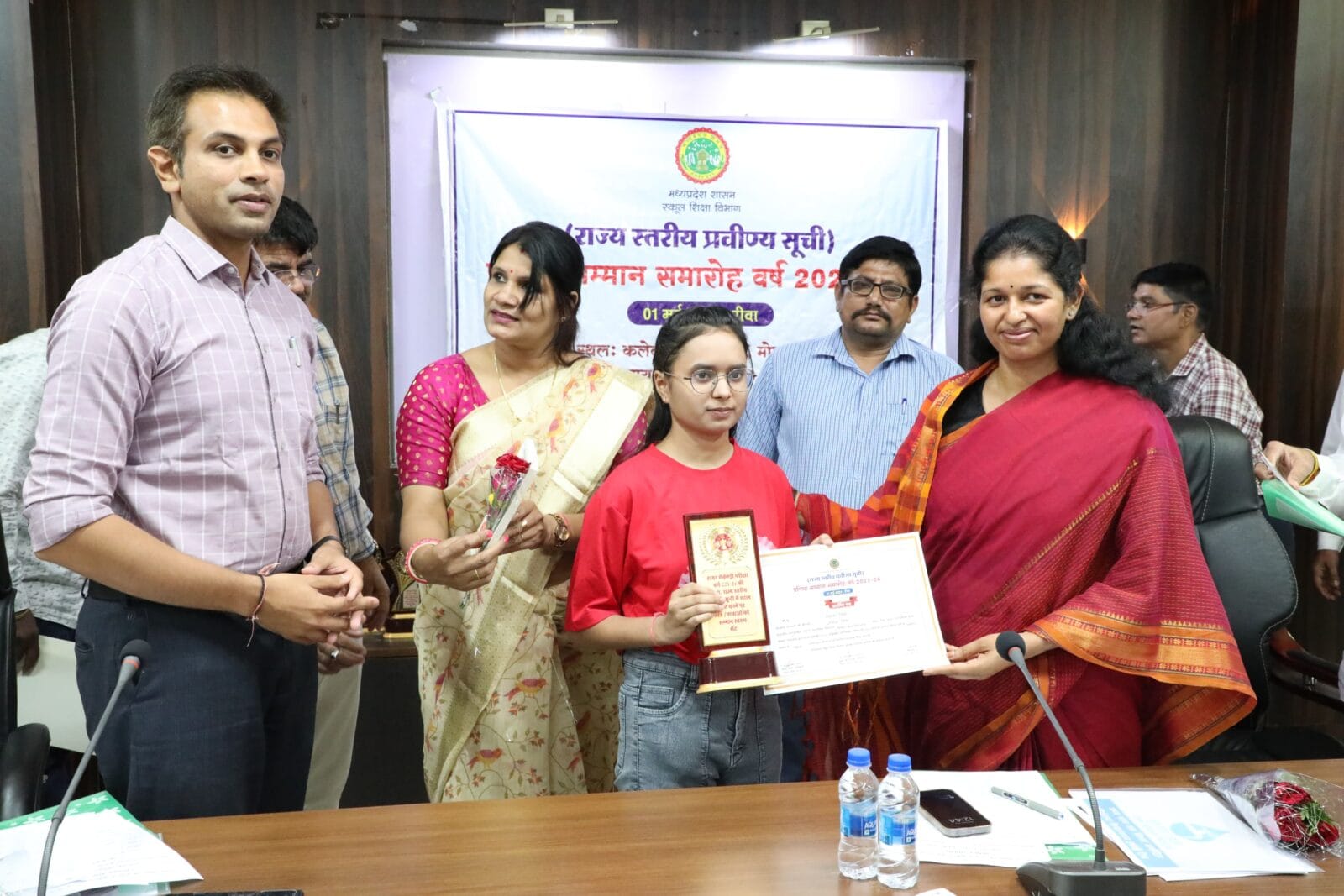 में शामिल साक्षी द्विवेदीए ईशान पाठकए चन्द्रेश मिश्राए कनक ताम्रकारए ऋषभ त्रिपाठीए निर्भय सिंह तथा रिद्धिमा सिंह को भी सम्मानित किया गया। समारोह में करतल ध्वनि के बीच मूकबधिर श्रेणी में कक्षा दसवीं में प्रदेश में प्रथम स्थान प्राप्त करने वाली आर्या वर्मा को सम्मानित किया गया। समारोह में जिला पंचायत के मुख्य कार्यपालन अधिकारी डॉ सौरभ सोनवणेए सहायक कलेक्टर सोनाली देवए सहायक कलेक्टर टी प्रपंजए प्राचार्य डाइट जीपी उपाध्यायए विद्यार्थियों के अभिभावकगण तथा शिक्षक उपस्थित रहे।