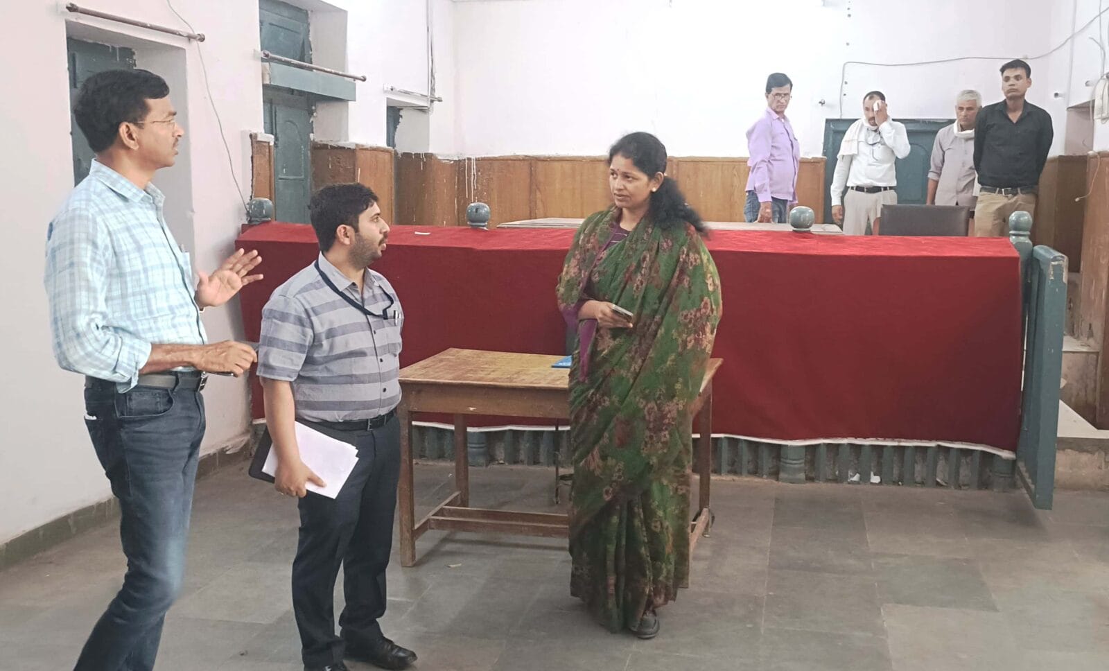 जिला निर्वाचन अधिकारी श्रेयस गोखले एवं प्रभारी अधिकारी स्ट्रांग रूम नायब तहसीलदार अरूण यादव उपस्थित